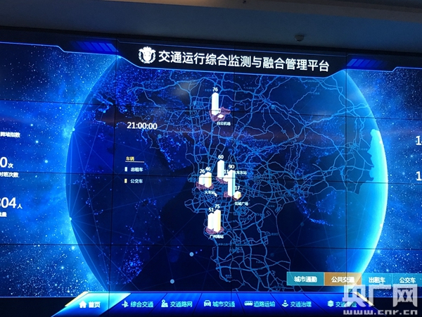 交通运行综合检测与融合管理平台。(央广记者 廖开迪 摄) 央广网广州5月2日消息(记者廖开迪 陈越)记者从广州市第97场疫情防控复工复产复市新闻发布活动上了解到,假期首日,广州地区到发旅客数同比有所下降,全市道路总体顺畅,5月4日下午或迎来首个返程小高峰。 据介绍,5月1日,广州地区共发送旅客46.8万人次,其中,铁路发送旅客34.3万人次,公路发送旅客8.8万人次,民航发送旅客3.7万人次。到达旅客21.4万人次(未含公路),其中铁路到达旅客18.7万人次,民航到达旅客2.7万人次。 总体上看,广州全市道路通行状况总体顺畅,机场高速、华南快速等多个重要出入城道路平均车速均有所提高;各出、入城车流量同比有下降,拥堵程度和拥堵时间均小于往年同期。此外,中心城区各主干道交通状况总体良好,平均车速较往年均有一定提高。