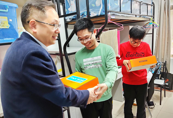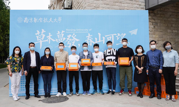 目前,多数博士研究生已返校,并全身心投入学习科研中。在B14栋的一间宿舍,住着航空学院的三位直博生胡云皓、任韦豪和姚向杰,他们分别是胡海岩院士和赵淳生院士的学生。“草木蔓发,春山可望!”走访老师勉励他们向院士学习,将来取得更大的成就。 不少保研、留学的同学在宿舍也能“宅”得住,“宅”得好。电子信息工程学院的葛际鹏、艺术学院的曹佳敏等同学都在积极为毕业论文做准备。“春风又绿砚湖岸,花红满枝盼归来。”礼盒上的诗词表达了学校对同学们平安归来的欢迎和美好未来的祝愿!