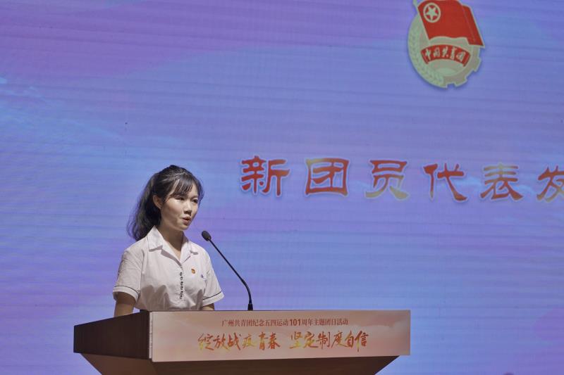 活动现场(央广网发 通讯员供图) 央广网广州5月5日消息(记者郑澍 通讯员 梁茹欣 冯英子)5月4日上午,广州市委宣传部、团市委、市教育局等组织举办纪念五四运动101周年暨“绽放战疫青春·坚定制度自信”主题团日活动,现场还举行了“两大云展馆”与“五类云课程”上线启动仪式。 “两大云展馆”即中国共产党领导下的“青春心向党”广州青年运动发展历程展、“花城有爱 志愿同行”广州青年志愿服务事业发展历程回顾展;“五类云课程”为“云团课”、“云队课”、“志愿云讲堂”、“社工云讲堂”和“心育云讲堂”。 据悉, 今年入团仪式的亮点在于创新性地开展“云宣誓”。团市委组织发动了全市32家广州市团校分校在团一大广场等不同地点举行团员入团宣誓以及老团员重温入团誓词活动,并在线上进行了同步展播。
