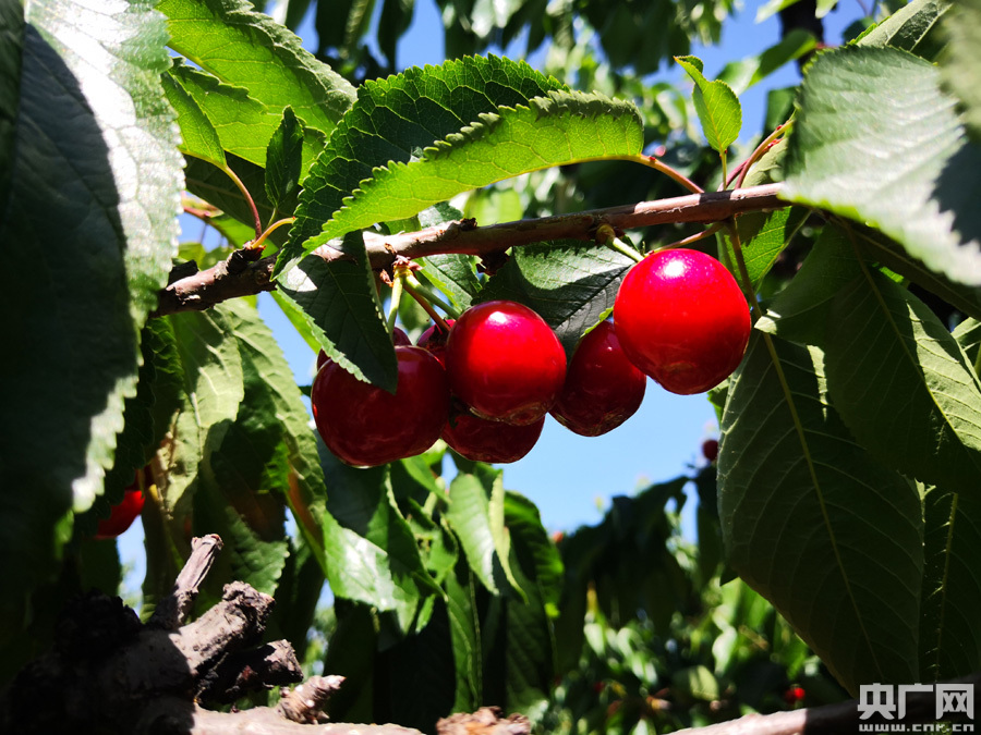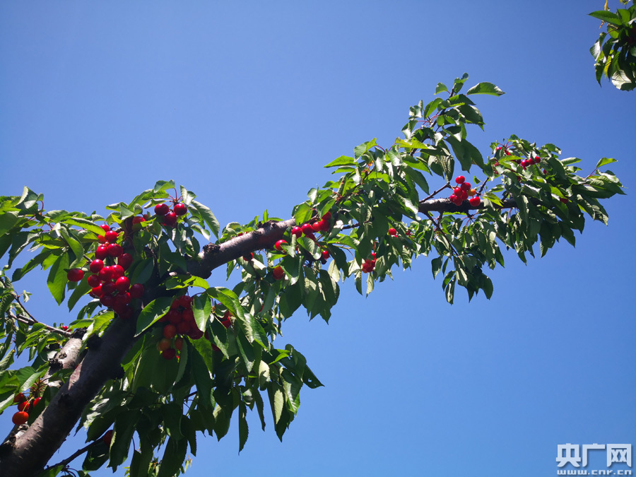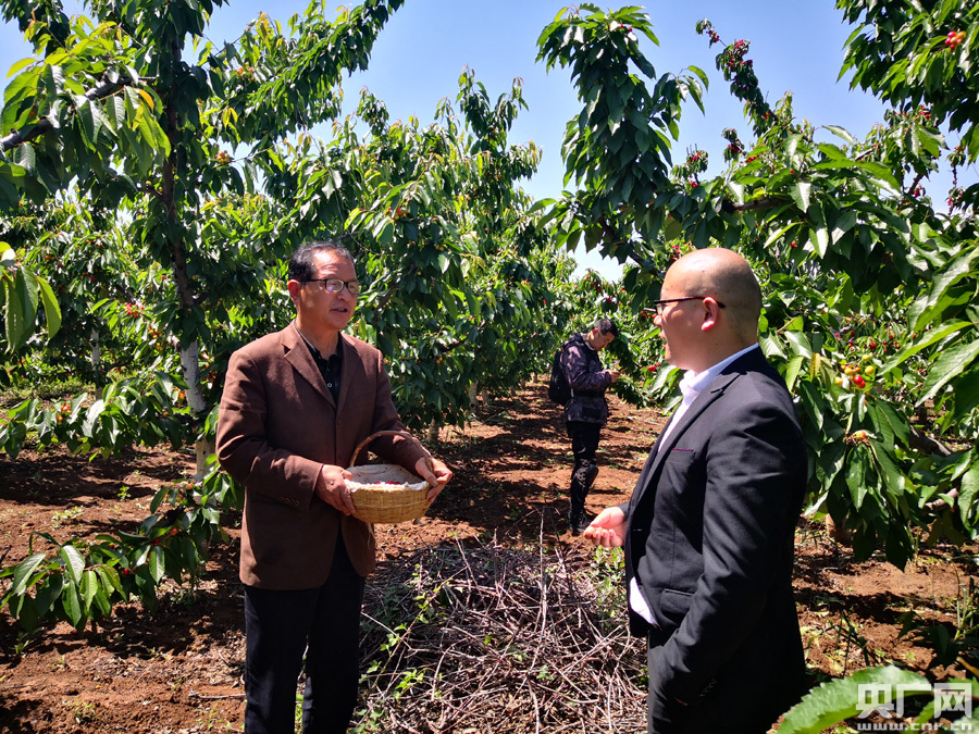 小樱桃带动大产业(央广网记者 雷恺 摄) 正说话间,和老魏合作的电商平台负责人也带人来到樱桃园,看看樱桃成熟度,并告诉老魏,明天就要发走一批樱桃。
