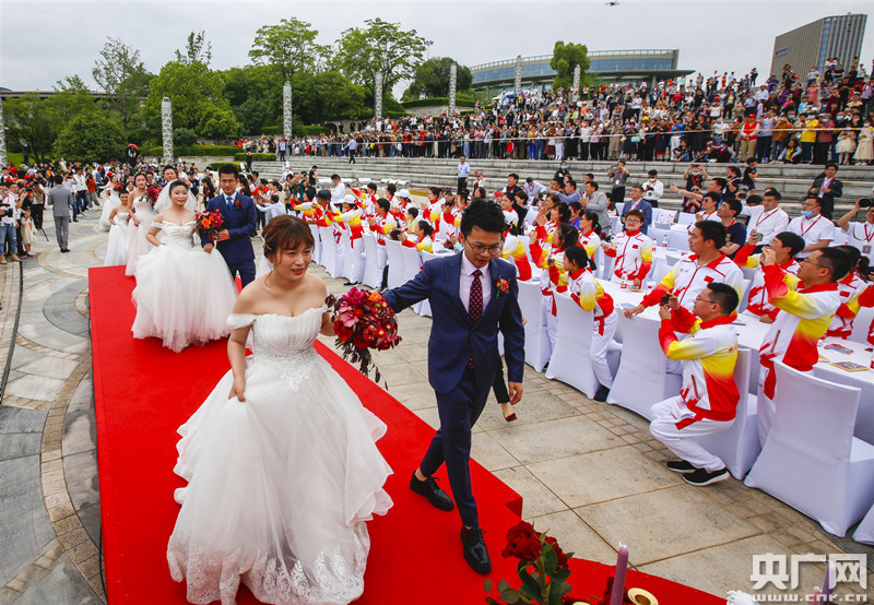 浙江省淳安县今天为战“疫”情侣代表举办空中婚礼(央广网发 王建才 摄) 央广网杭州5月10日消息(记者陈瑜艳 通讯员方鹤阳 朱海亮 刘雪姣)为了抗击疫情,许多医护人员主动推迟了自已的婚期,今天上午,“天使归来 爱满人间”空中婚礼公益活动在杭州市淳安县举行,来自全省医疗系统的六对新人在千岛湖举幸福牵手。