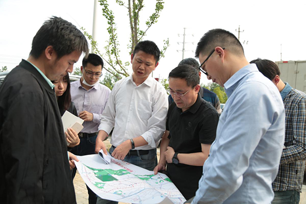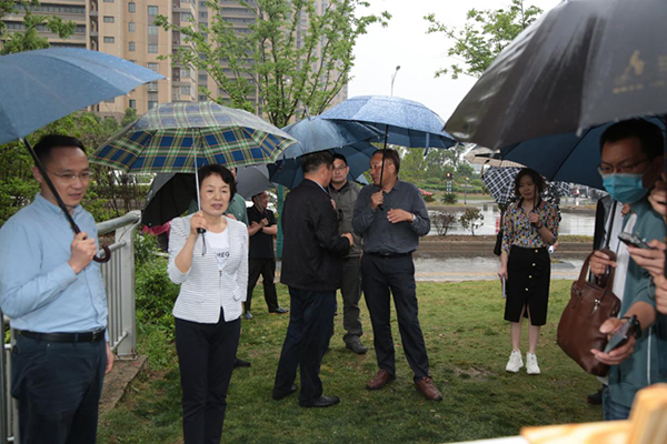 麒麟科创园工作人员介绍河道整改计划 当天下午实地暗访,找准污水排放原因、敲实责任单位 污水从何而来,是工业废水还是生活污水?附近居民区雨污分流改造是否到位?污水治理多年未决,痛点究竟在哪里?……围绕这一系列问题,5月11日下午2点,市人大常委会环资城建委、农委和市水升办工作人员“直扑”现场,实地暗访。 沿着有轨电车1号线北湾营街站往东北方向望去,春夏之交的河道岸坡绿草如茵,令人赏心悦目。但行至运粮河东路与北湾营街交叉口时,一股刺鼻的异味骤然出现。从上往下看,不仅水面上飘浮着一些垃圾,还有一股浑浊的污水也正通过排水口缓缓淌进河道。 经过1个半小时的现场摸排,暗访小组对污水排放点的污染情况、形成原因、责任单位进行预判,当场确定了“由市人大常委会牵头,市住建委、水升办、水务局等多部门参加,麒麟科创园管委会负责承办”的办公方案。次日一早,市人大常委会主任龙翔要求“商有关部门、板块妥善解决”。 “五部门+3名人大代表”冒雨调研,现场办公会确定整改时间表 14日下午,暴雨突袭南京。市人大常委会副秘书长、环资城建委主任陈雷带队,市人大常委会农委和市建委、水升办、水务局、麒麟科创园管委会负责人,以及3名相关领域的市人大代表冒雨赶赴现场,察看污水排放情况。