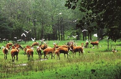 黄海之滨的盐城,蓝天白云,海岸森林,鹤翔蓝天,鹿逐大地。晴空一鹤排云上,便引诗情到碧霄。每到秋冬季节,盐城湿地珍禽国家级自然保护区内,漫天的盐蒿草为无边的滩涂铺上红色植被,一望无际的芦苇丛成为迁徙水鸟的天堂。广袤滩涂,每年都迎来10万至20万只越冬候鸟,以及300多万只迁徙停歇的鸻鹬类候鸟,对迁徙水鸟来说这里是至关重要的“加油站”。
