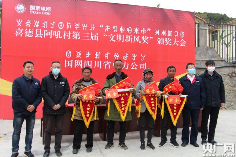 阿吼村文明新风颁奖(央广网发 王小兵供图) 国网喜德县供电公司驻村工作队联合村组干部,从改变村民居住方式、生活习俗入手,通过“光亮宝宝”“文明大课堂”等活动,倡导文明生活理念,通过文明积分调动村民养成爱卫生的好习惯。村民曲木立古木说,他们现在都养成了爱卫生的好习惯,“现在我们几乎每天都打扫两三遍啊,然受晚上给两个小娃娃洗手洗脚才睡觉。然后洗澡也是过几天就洗一次。我们现在对这个环境卫生看法也不一样了,感觉现在搬到这个新房子里很舒服,环境好了,心情也跟着变好了。” 国网喜德县供电公司驻村工作队队长、阿吼村第一书记王小兵介绍说,通过三年多努力,阿吼村发生了巨大的变化,村民不仅做好个人卫生和家庭卫生,还积极主动参与村集体的各种活动,“每个季度我们会开展一次文明新风表彰大会,对于表现最好的四个家庭进行奖励,开大会发大红花,发奖状。老百姓通过这个大会来感受到获得优胜家庭那种喜悦那种自豪,也刺激到自己吧,希望通过这些方式刺激老百姓,一个方面是激发自己的那种主动性,一个也是激发自己的内生动力。” |