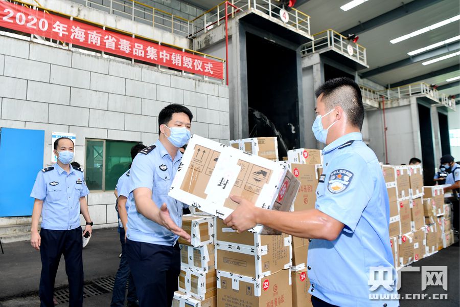 海南集中销毁毒品1.725吨(央广网发 海南省公安厅供图) 央广网海口6月3日消息(记者许云 通讯员黄金)6月3日上午,在“6·26”国际禁毒日来临之际,海南省公安厅、海南省禁毒办联合在澄迈县老城经济开发区海口焚烧发电厂举行2020年集中销毁毒品仪式,集中销毁公安机关缴获并已结案的各类毒品1.725吨。海南省人民检察院、海南省生态环境保护厅工作人员全程监督销毁过程。