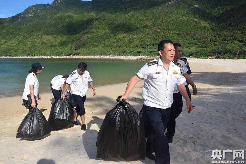 惠州海事开展“6·5世界环境日”主题系列活动(央广网发 惠州海事局供图) 开展海岛净滩行动 切实保护海洋环境 下午13时30分,经过近一小时的海上奔波,海事志愿者们到达中国保存最完好的自然生态海岛之一——三门岛。在活动现场25名活动参加人员在“美丽中国,我们在行动”的主题宣传条幅上签下名字,海事志愿者们向三门岛村委赠送了垃圾分类宣传画报和垃圾袋,并对垃圾分类知识进行了讲解。随后,志愿者们便带着手套、垃圾袋等工具兵分两路行动起来,其中,陆地志愿者在海滩徒步进行净滩行动,海上志愿者在海中对漂浮垃圾清理,互相配合,认真捡拾,不放过每一个塑料、泡沫、烟头、饮料瓶等海洋垃圾,并按照《大亚湾区垃圾分类指引》要求对捡拾到的垃圾进行分类包装。“在志愿者的共同努力下,随海水漂至岸边的垃圾被分类清走。虽然疲惫,但看着清爽干净的海岸,大家都非常欣慰。”海事青年志愿者蔡萍说。