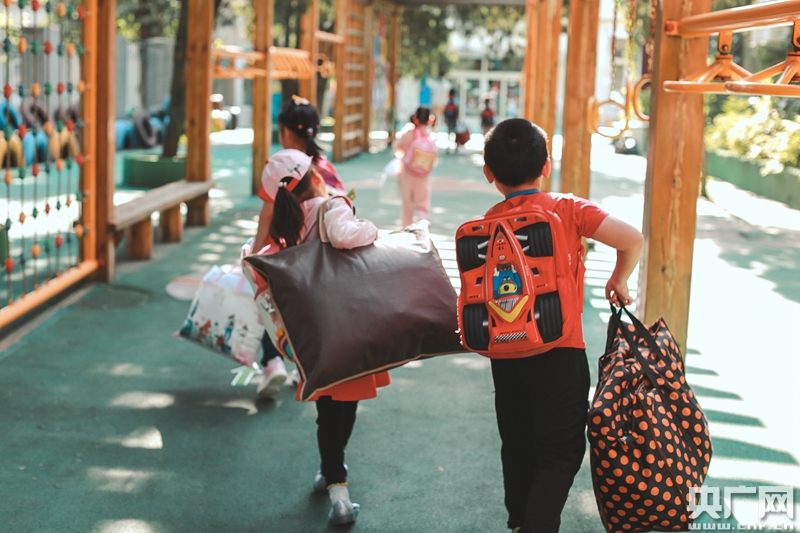 “神兽”们开学了。(央广网记者 唐磊 摄) “神兽们”漫长的假期对家长来说可谓是一种“甜蜜的折磨”。幼儿园的复园将家长从照顾孩子的担子中“解脱”出来,不必因为照顾孩子而影响正常的工作。“假期这几个月孩子基本上就没出过门,我们在家就是帮孩子锻炼身体,养成良好的生活习惯。”李冬告诉记者,“家里幸亏有老人帮着照顾孩子,要不会影响到正常的工作。”