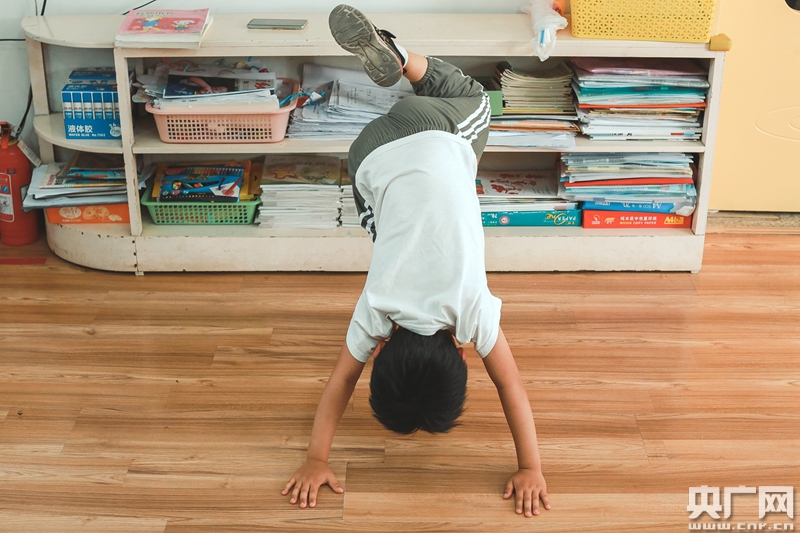 回到久违的教室里,有的孩子给同学们表演了一段“功夫”。(央广网记者 柴安东 摄)