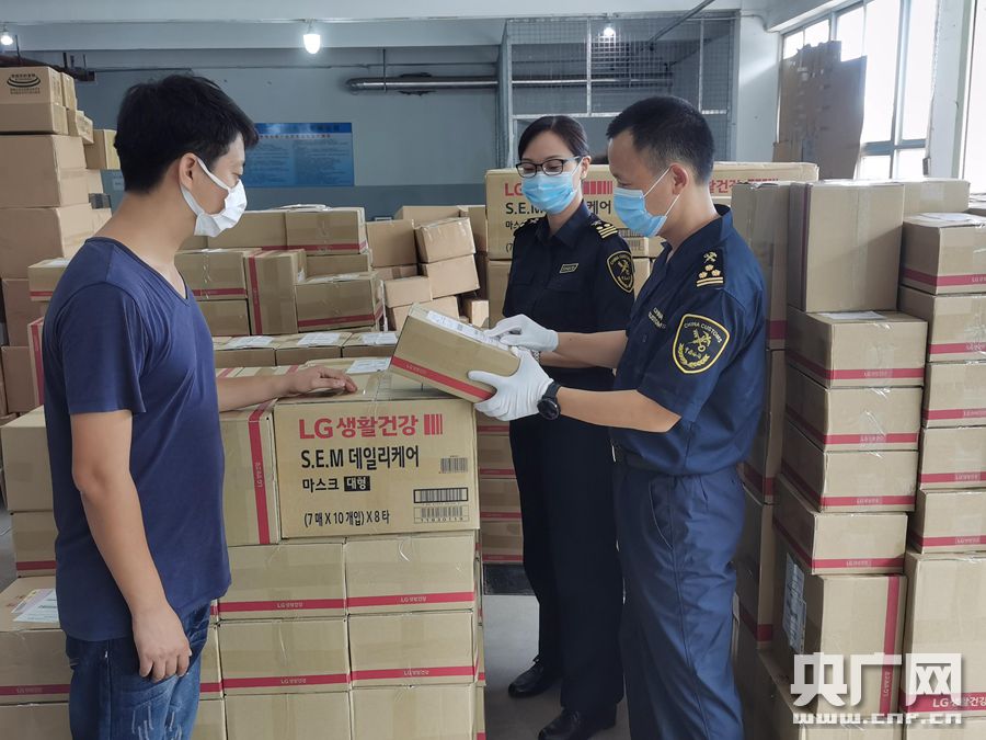 ![]() 广州海关所属广州白云机场海关关员在跨境电商仓库进行巡仓监管(央广网发 海关供图)