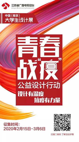 青春战“疫” 彰显公益特色 公益特色是今年展会活动的一大亮点。为展现在新冠肺炎疫情期间,广大青年人投身抗“疫”行动的正能量。展会期间特别开设“青春战‘疫’”公益设计精品专区,该专区内的展品均来自于今年2月江苏省广播电视总台发起的“青春战‘疫’”公益设计行动,设计者均为全国高校设计新秀或原创设计大咖。 吴姗表示:“大概有287个学校的师生来参与到设计海报、动画视频这么一个活动当中来。在我们的11月12号到15号的展会期间,将集中展示其中的优秀作品。” |