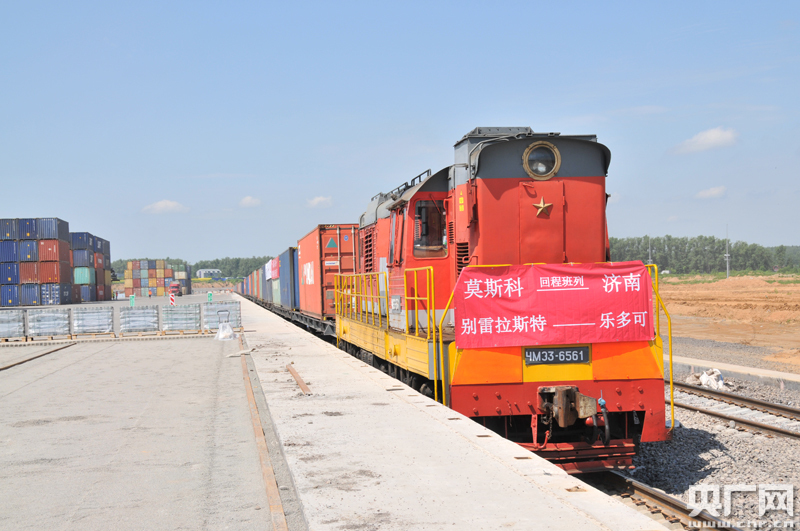 央广网大连6月19日消息(记者贾铁生 通讯员别雷)记者从辽宁港口集团获悉,莫斯科当地时间6月18日中午,载有61个40尺集装箱的“莫斯科-济南”中欧班列,在莫斯科别雷拉斯特物流中心启程,经我国内蒙古二连浩特开往山东济南。这是该中心投入运营以来,发运的首列回程中欧班列,标志着中俄港铁物流大通道建设取得实质性进展,对于促进中俄、中欧经贸往来和“一带一路”建设都具有重要意义。