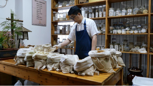 新华网南京6月21日电(戚轩瑜)走进王其标的工作室,撞入眼帘的首先是木架上一排排装着香料的瓶瓶罐罐和形状各异的木头,在鼻息间萦绕盘旋的则是一股若隐若现的药香。再抬眼往他那方宽大的木头案台上细瞧,十几个布袋子沿着桌边一字排开,每个布袋子里都塞了一张写有香料名称的纸片。原来,一个小小的端午香囊里却是大有乾坤!