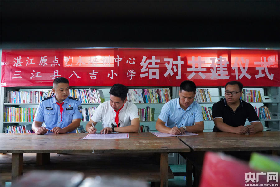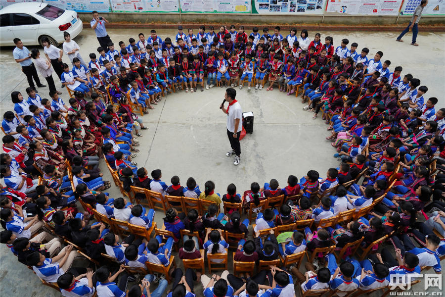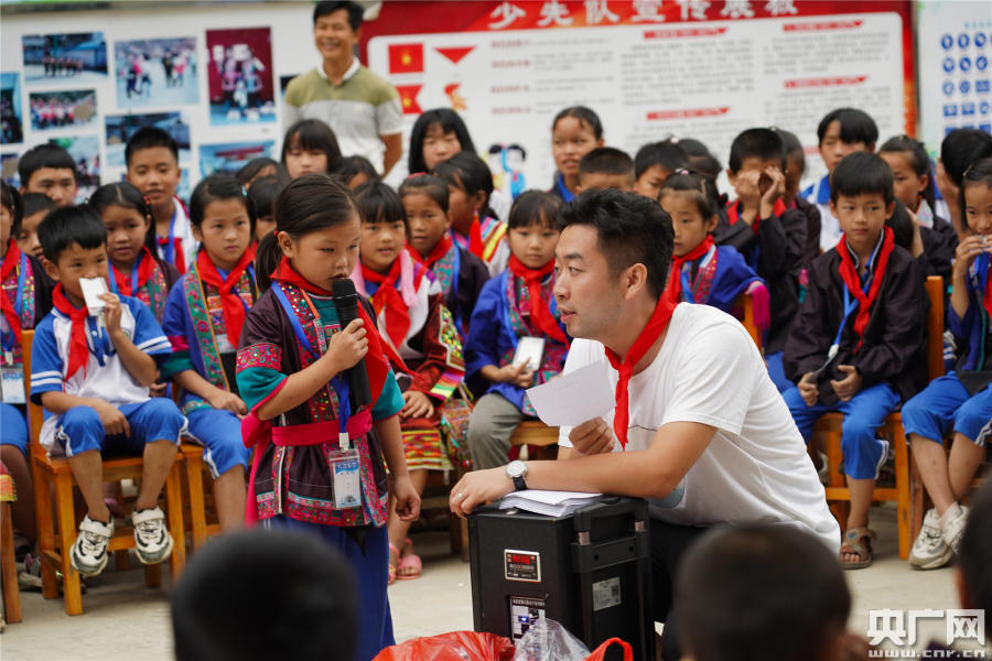 湛江边检赴广西扶贫助学(央广网发 通讯员供图) 现场教育向长效延伸 “敬礼!”当天上午,八吉小学在操场举行了特殊的升旗仪式,随着一声响亮的口号,整齐列队的边检民警和穿着民族服饰的各年级学生向着缓缓升起的五星红旗敬礼。执勤四队教导员丁大卫作为民警代表担任了升旗手,在他身边,是两名担任护旗手的侗族小学生。活动中,丁大卫分享了在国门口岸执勤、坚守和抗疫的故感人故事,为学生们开展了一次生动的爱国主义教育。 “听我说谢谢你,因为有你,温暖了四季……”孩子们纯真的歌声回荡在八吉小学的操场上。活动当天,全体学生搬着板凳围成同心圆,湛江边检站邀请驻地学校老师为他们上了一堂生动的声乐课。短短的两节课时间,学生们听得津津有味,下课铃响起了也舍不得离开,最后用一首《听我说谢谢你》说出了对边检民警和老师的感恩之心。 助学不仅要捐赠物资,更要“送知识”。八吉小学师资队伍单薄,教师往往都是“全科教师”,还要负责照顾孩子的生活细节,很难在各类课程上做到精通,声乐、美术等“副科”更是主要靠孩子们自己练习。为了解决教学资源匮乏的难题,湛江边检站多次走访,邀请驻地学校与八吉小学签订了结对共建协议,建立了互助教学的模式,协议定期开展送教下乡活动,拓宽教育资源;同时,多方收集驻地优秀学校各科目精品课程教学录像,探索开展线上+线下“双师教学”,通过播放录像授课和老师现场教学,让学生们在山区也能接触到专业、优秀的课程教育,进一步丰富学校教学模式,扶志扶智向长远发展。 湛江边检赴广西扶贫助学(央广网发 通讯员供图) “他是我最喜欢的英语老师” 当天下午,支教民警农卫甲接到了学生家长的电话,听到他任教学生的表现,又好笑又心疼。当时,助学活动结束后,他乘坐车辆到县城办事,学生们看见“农老师”背着包上车,以为他要结束支教了,回到家里后不高兴又不说话,直到家长问起才哭着说农老师以后不来给他们上课了。 今年5月,湛江边检站民警农卫甲主动响应国家移民管理局和珠海边检总站支教号召,通过层层选拔成为全国移民管理机构77名支教民警中的一员,负责八吉小学三到五年级的英语、体育课程教学任务。“既然做了决定,就要负责到底。” 为了让课堂更加生动有趣、更好的调动学生们上课的积极性,农卫甲绞尽脑汁,每晚备课到半夜一两点,遇上停电点起蜡烛继续奋战。这份认真和执著让他很快赢得了学生们的喜爱。学生吴欢迎在作文中写道:“有一个好消息,新来了一位英语老师,他的英语读得很标准,他是我最喜欢的英语老师。” “学习、洗礼、收获。终其一生,孩子们的梦想是翻越大山,走向外面精彩的世界。或许更应该的是,首先有人引领他们翻过心中的大山。”参加此次助学活动,一双双渴望知识的眼睛,让负责对口帮扶工作的湛江边检站副站长胡志辉深受触动。他表示,教育是脱贫的治根之策,下一步,湛江边检站将继续竭尽所能,为八吉小学提供支持,并动员更多的社会团体和热心人士参与到扶贫助学行动中来,共同用爱心为贫困山区孩子们的梦想“插上一双奔跑的翅膀”。