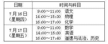 新华网南京7月14日电(庞雪汀)南京市2020年初中学业水平考试(简称“中考”)将于7月16日、17日进行。全市共设立12个考区,137个考点,1909个考场,准备迎接5.55万名初三考生。 今年中考继续在高清巡查系统下进行,南京市招考院提请考生注意以下事项: 疫情防控不放松 考前,对所有考生进行健康状况监测,发现身体状况异常的,须经卫生健康部门、疾控机构专业评估,凡不具备正常参加考试条件的考生不得与健康考生同考场考试。 各考点学校在考生和考试工作人员进入考点的入口处设体温检测点,检测点设立多条体温检测通道,所有考生、考试工作人员体温低于37.3℃方可进入考点。准备好备用隔离考场,设置专用防疫特殊通道,配备防疫物资。 考生散场时要按监考员的指令有序离场,不得拥挤,保持间距。送考家长在考点门口应避免人群聚集。 熟悉考场先踩点 7月15日下午4∶00—5∶00各考点学校将对考生开放,考生可携带考试证到考点学校熟悉考点环境(考生不得进入考场),掌握前往考点的路线和时间,考生可到考点学校了解本人所在的考场和考点内饮水处、厕所、医务室等设施的所在位置。 带齐物品别慌张 考试当天,记住带好考试证,带齐考试用具。考生进入考场时,只准携带必需的文具用品,如0.5毫米黑色墨水签字笔、2B铅笔、橡皮、小刀、圆规、三角板等。考生可以佩戴普通手表,但不能佩戴有存储、记忆功能或具有发送、接收信息功能的电子表、智能手表进入考场。 南京市招考院提醒考生,如天气炎热,考场的空调将全程开放,各位考生可携带一件薄外套以备不时之需。 禁带物品看仔细 除道德与法治和历史学科开卷考试外,不带与考试无关的物品。不得携带存储有与考试内容相关资料的电子设备、具有发送或者接收信息功能的设备、涂改液、修正带、计算器等,若不慎将上述禁止物品带入,请立即交监考教师保管。考生在考场内不得自行传递文具用品。尤其不要将手机等通讯工具带进考场,一旦带入考场,无论作弊与否,都以违纪处理。 道德与法治、历史学科考试所需资料由考生自行装袋,可在第1场英语考试进场时放置在资料袋摆放处,英语考试结束后再领回。 掌握时间别迟到 注意每场考试的进场时间,16日上午语文科目和17日下午英语科目考试开考前30分钟开始进入考场,其余各科考试开考前20分钟开始进入考场。 考试开考30分钟后,迟到考生不能入场参加考试,场内考生方可交卷离场,交卷离场后不得以任何理由再次进入考场续考。交卷后,不要在考场附近逗留或交谈。考试结束前15分钟,场内考生停止交卷,提醒考生注意,须抓紧时间将试题答案填写在答题卡上。 每天下午第一场考试结束后,不清场,也不播进场铃声信号。请考生不要远离考场,按时参加第二场考试。 证件遗忘不要急 如果考生的考试证疏忽忘带或遗失,不要慌张,经送考教师确认身份后,先安排考生进入考场考试。对忘带考试证的考生,送考教师须在本学科考试结束前或在下一科目开考前将考试证送到考场;对遗失考试证的,可到所在区招生办(招考中心)马上进行补发。 作答试题要规范 南京市中考所有科目所有试题均实行计算机网上评卷,因此,须在答题卡各题目规定的答题区域内作答,凡在试卷、草稿纸或各题目指定答题区域以外的地方(或超越边界)作答,其答案一律无效。作答客观题要记住填涂答题卡,不要在试卷上做了题,忘记在答题卡上涂卡;作答主观题要注意看清答题卡上的题号,注意题号的排列顺序,将答案写在相应题号下的答题区域内,不要填错位置。 据介绍,在南京市委、市政府的领导下,各区教育局、招生办、考点学校科学规范操作、严格履行工作职责。目前,全市各考点各项考务工作皆已就绪,都做了考前高温和暴雨等恶劣天气的应急预案,以及考试疫情防控工作方案和应急处置预案。 2020年中考时间安排