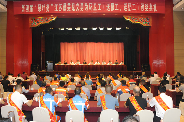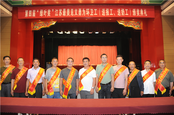 7月16日上午,江苏省见义勇为基金会在南京举行第四届“绿叶奖”江苏最美见义勇为环卫工(送报工、送奶工)颁奖典礼。对2018年7月以来全省“三工”群体中涌现出来的31名先进个人、7个先进群体,共46名见义勇为人员进行了集中表彰。