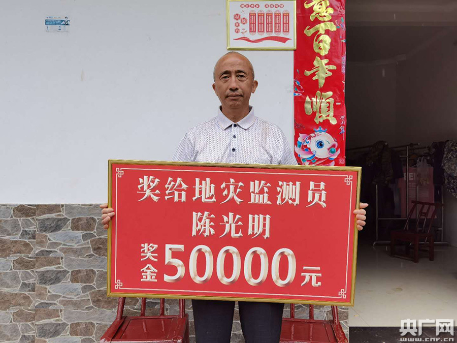 湖北恩施通报表扬沙子坝滑坡“预警第一人”陈光明(央广网发 恩施州外宣办供图) 央广网恩施7月26日消息(记者左艾甫)7月26日,恩施市委、市政府通报表扬为该市沙子坝滑坡预警作出重要贡献的地质灾害点监测员陈光明,并为他送去5万元奖金。同时,号召全市党员干部向他学习,恪尽职守、敢于担当、主动作为、乐于奉献,为恩施经济社会发展凝聚磅礴力量。 2020年7月21日凌晨,因持续强降雨及地质条件等因素综合作用,恩施市沙子坝滑坡。屯堡乡马者村地质灾害监测员陈光明7月17日在开展地质灾害隐患点例行监测时发现险情迹象,仔细甄别、及时预警、及时上报,上传照片引起工作人员重视,迅速勘查判断,作出群众撤离决定。陈光明发挥了地灾“预警第一人”的关键作用,为组织影响区内315户1339名群众安全撤离贏得了36小时的宝贵时间,无一人伤亡。陈光明认真负责的敬业精神得到了人们的交口称赞,他朴实无华的那句话——“不存在救了谁,这就是我的责任”在全国媒体广泛传播。 |