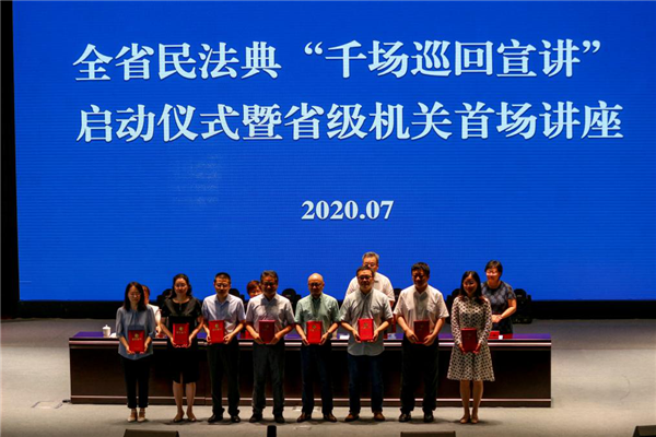 7月28日,民法典“千场巡回宣讲”启动仪式暨省级机关首场讲座在南京举行。江苏省委宣传部副部长徐宁,省委省级机关工委常务副书记李新平,省法学会党组副书记、专职副会长范沁芳出席活动并发表讲话,南京大学法学院院长、省法学会副会长叶金强应邀解读民法典的制度创新与实践意义。 据悉,全省民法典千场巡回宣讲活动由江苏省委宣传部、省委省级机关工委、省法宣办、省司法厅、省法学会共同举办,旨在全省持续掀起民法典学习宣传热潮,推动民法典走到群众身边,走进群众心里。