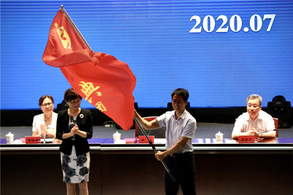省委宣传部副部长徐宁向专家宣讲团代表南京大学法学院叶金强教授授旗