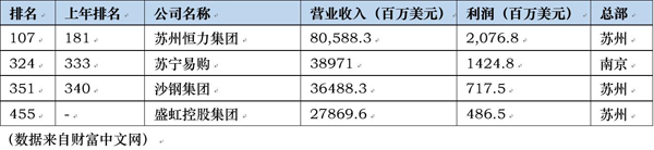 《财富》五百强江苏4家上榜 恒力实现四连跳