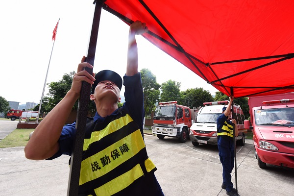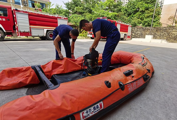 央广网福州8月10日消息(记者张子亚)今年第6号台风“米克拉”预计将于11日在福建厦门至连江一带沿海登陆。针对台风“米克拉”可能带来的强降水及大风天气,福建消防救援队伍全面动员,严阵以待,全力以赴做好抢险救灾各项准备工作。 据福建省消防救援总队相关负责人介绍,全省消防救援队伍8000余名消防指战员、专职消防员在岗在位,全力投入防抗台风救灾工作。省、支队、站三级抗洪抢险救援队共900人已全部进入战位。其中,福州、厦门、漳州、泉州、莆田、宁德、平潭7个沿海地市集结抗洪抢险救援机动力量280人、3500余套装备、40艘舟艇(消防船1艘)。三明、南平、龙岩3地120名抗洪抢险救援队员整装待发,做好随时增援准备。 同时,与全省范围内2000余人社会救援力量保持联络,随时协助消防救援队伍开展救援行动。 另成立200余人的专业排涝分队,做好省内城市内涝点、乡镇农田村庄和重要目标等排涝任务。 严阵以待全力备战(央广网发 通讯员供图)