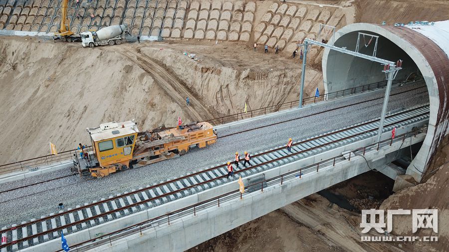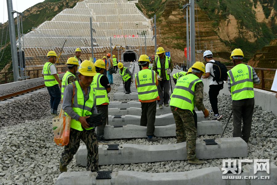 西银客专甘肃省庆阳市宁县境内中铁一局新运公司员工进行最后的工序作业。(央广网发 通讯员供图) 西银客专南起陕西省省会西安,向西北经陕西省咸阳市、甘肃省庆阳市、宁夏回族自治区吴忠市后,接入银川市。设计速度250公里/小时,并预留350公里/小时的有砟高铁提速条件。中铁一局西银客专甘宁段铺架项目部负责人王小刚介绍,西银客专于2015年年底开工建设,计划于今年年底建成通车。“西银客专全线全长618公里,这条线是我国一次性建成最长的有砟客运专线。施工过程中面临运输距离长,坡道变化大,交叉施工多、安全风险大,施工环境恶劣等诸多困难。为此,我们运用了国内最先进的CPG500型和TCM60型铺轨机,采用三班轮流作业,经过21个月的艰苦奋战,今天终于铺通了!”