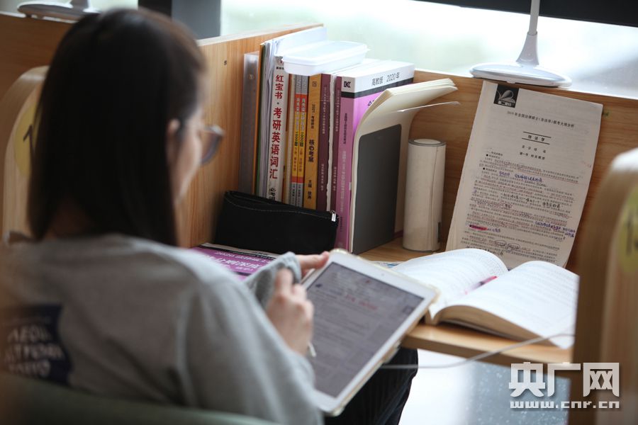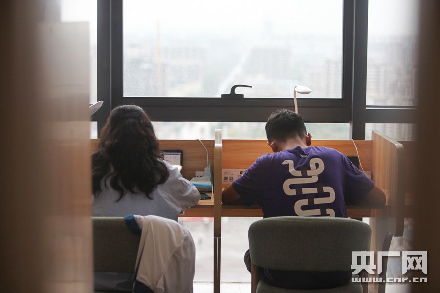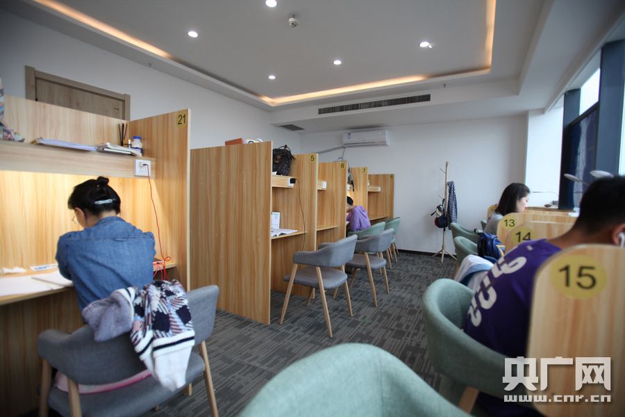 专心自习(央广网记者 徐升 摄) “有一个女孩子在考研前20多天,办了一个短时自习卡,她每天很准时来。我8点开门,她6、7点钟就自己来这儿输门禁密码进来了,一直学到晚上两三点,就这样一直持续了20多天。”在经营自习室的这半年时间里,自认为已经小有成就的宋嘉斌看到了在这座城市最上进的一面,有很多人在不停地“奔跑”,努力地拼搏着。宋嘉斌说:“大家都很用功、很努力,不管他成不成功,考没考上,至少让我见识到了生活中还有这么多人在努力、在用功,自己也慢慢受到了影响,绝不敢停下脚步来。”
