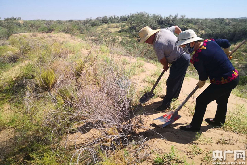 沙地植物平茬(中央广播电视总台央广记者 廉军 摄) 沙漠治理与休闲观光有机结合,实现了生态和经济效益的双赢。“绿水青山”来了,“金山银山”也跟着来了,有了绿色做保护,千亩沙漠成了发展聚宝盆。经过多年的生态修复,这里鸟语花香,山鸡、刺猬、狐狸等动物们也在此安家,给绿洲添趣不少。沙漠生态园里观光采摘、农家乐餐饮火爆,每年接待游人超过万人次。