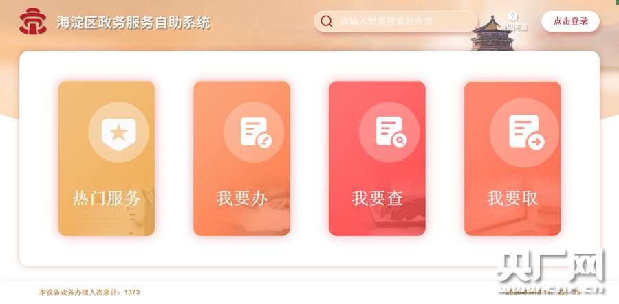 北京首台运用区块链等新技术的自助服务终端亮相海淀政务服务中心(央广网记者 刘天思 摄)