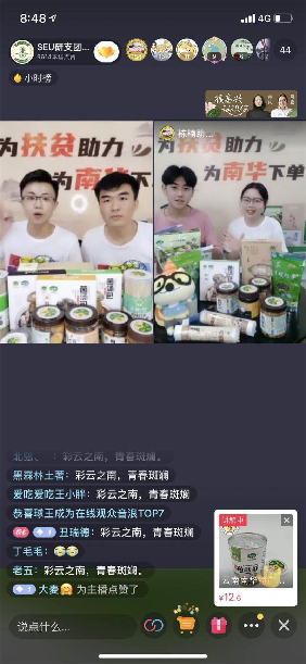 直播截图 “听老师说,云南南华县是我们学校的定点扶贫县,我们研究生支教团的哥哥姐姐们已经连续多年在南华支教。”就读于信息科学与工程学院的张乐宇说,“虽然我们不是很专业的带货主播,但我们也想和哥哥姐姐们一起尽自己的一份力量。因为这件事情很酷,很有价值。” 据介绍,云南省楚雄州南华县是东南大学自2013年以来定点扶贫的国家级贫困县。南华县地处滇中高原,得天独厚的立体气候孕育出丰富的野生菌资源,南华野生菌的种类、数量、质量均处在全国领先地位,被称为“野生菌王国”。 近8年来,东南大学与楚雄州、南华县校地双方党政领导互访近30次,东南大学累计向南华县捐赠扶贫资金1000余万,帮助南华县引入扶贫资金1200余万,先后向南华县选派了8名挂职干部,32名研究生支教团成员。此外,近2年来,东南大学直接购买了南华县农特产品近540万元,帮助南华县销售农特产品近880万元。 |