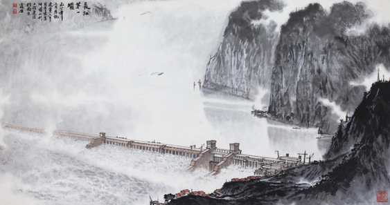 中国画 《长江第一坝》 伍霖生 同时,展览也以老、中、青几代艺术家的实践展示出美术创作如何在承袭传统的基础上,对艺术观念、作品母题和形式风格方面做出的创新探索。尤其展现了近年来创作的优秀成果,彰显出鲜明的时代特色和风采,也是对建构当代中国美术主体价值的回应。 小康社会是从古至今对宽裕、殷实的理想生活的追求,几代人的奋进推动了小康社会的全面建成。此次展览集中呈现馆藏作品中的小康图景,既反映了繁荣安定的社会生活,也透露出美术事业在传统与现代观念的交织下勃发出的生命力。