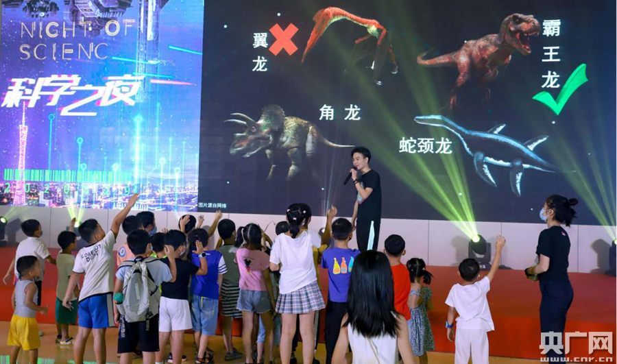 科学中心之夜现场节目互动受欢迎(央广网发 广东科学中心供图) 广东科学中心当晚专场开放自美国NASA引进的《星球奇境》展厅和低碳&新能源汽车体验馆,引领观众探究宇宙奥妙,体验新能源汽车高科技;IMAX 3D巨幕影院放映科普电影《后院风光》,激发观众爱科学、爱观察、爱探索的热情;此外,广东科学中心还联合正佳自然科学博物馆、小翼科普、科乐多等科普机构,现场组织科普表演秀、趣味科普DIY活动、热气球升空科普、航空机长模拟驾驶体验等十余项充满科学性、体验性和互动性的趣味项目,系列丰富的科普活动让观众大呼过瘾。