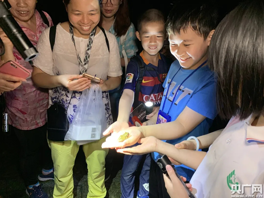 科学中心之夜现场节目互动受欢迎(央广网发 广东科学中心供图) 除了广东科学中心,其它科普基地同样热闹。在广州动物园,大小朋友在动物园里观察野生小动物和圈养保护动物的夜间行为,以不一样的视角了解动物们奇特的夜晚状态,在科普老师带领下认识生物多样性。在华南植物园,孩子与家长们在树下观察前四后五的“脚趾”的斑腿泛树蛙、抱卵抚育的高脚蜘蛛,与“跳高冠军”广翅蜡蝉幼虫互动……科普老师引导孩子们一起探索自然,发现自然科学之美;“鸣春谷奇妙夜”不仅有科普讲座,还有夜观导赏体验;广东省土壤科学博物馆举办“土壤健康怎么测”科普小课堂,带领观众动手作实验,传播健康土壤、爱护土壤、生态文明的观念。