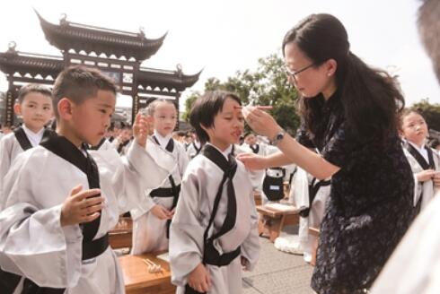 南京市夫子庙小学“开笔礼”仪式8月31日在夫子庙广场举行。(邵丹 摄)