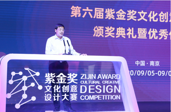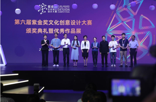会上,大赛主承办单位负责人为第六届“紫金奖”文化创意设计大赛金奖获得者颁奖。