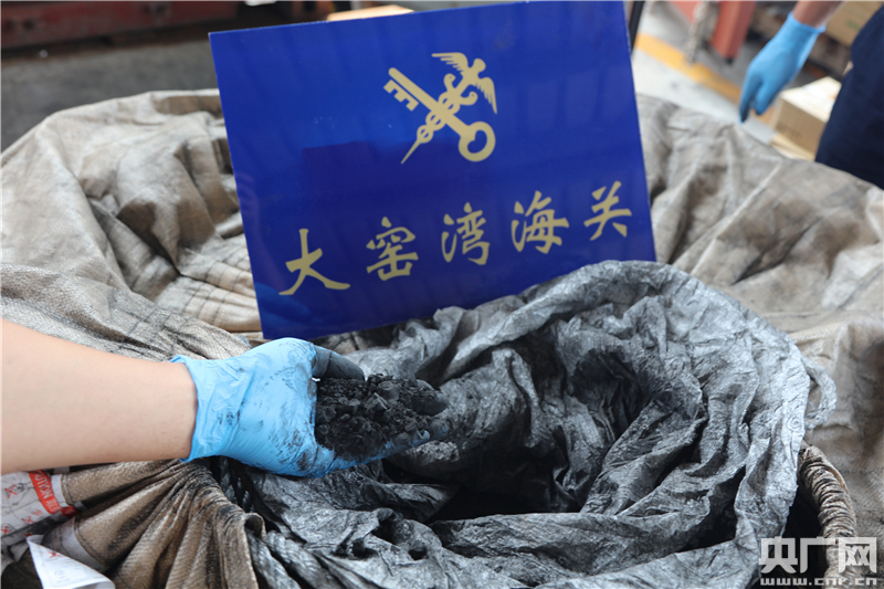 大连海关查获的“洋垃圾”(李进 摄) 海关关员在对一票从国外进口申报品名为次氧化锌的货物查检时,发现其为灰黑色粉末,有少量银色颗粒及浮渣,疑似为我国禁止进口固体废物,随即进行取样送检。经过对该样品进行固体废物进行属性分析鉴定,该样品氧化锌含量不符合标准的限量要求,被认定为含锌、铜等废料经冶炼工艺产生的含锌粉尘收集物,不符合国家、地方制定或行业通行的被替代原料生产的产品质量标准,该批货物被判定属于禁止进口的固体废物。 |
