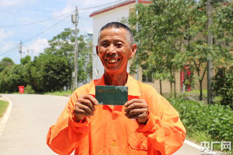 贫困户王全梅大力发展鸡鸭鹅等养殖业,年收入4万余元(央广网发 通讯员供图) 在蔡河村,通过养殖增收的贫困户不在少数。养牛大户夏国安从贫困户到蔡河村的养牛达人,从以前的2头牛到现在9头牛,总价值十多万元。上了年纪的夏国安家里3口人,老伴体弱多病无法从事劳动,还有患有精神疾病的儿子,他便是家中唯一的“壮劳力”和“顶梁柱”,为了能够方便的照顾老伴和儿子,他每天早起晚归,精心放养牛群。由于他的精心放养,牛群膘肥体壮,效益也开始显现。“今年卖3头存5头问题不大,纯利润大概有3万多元,第一书记和帮扶单位也是想尽办法帮我销牛肉,现在也不愁销路,我就专心养好的我牛”,夏国安乐得合不拢嘴。 就业帮扶 村民勤业笑开颜 看到存折里刚刚到账的公益性岗位的工资,贫困户沈世福开心的笑了。“我年纪大了腿脚也不灵活了,感谢政府给我提供的公益性岗位,让我在家门口就能够干一份力所能及的工作,我每天抽出一些时间打扫村里的卫生,其余的时间可以去做其他事情补贴一点家用。”自脱贫攻坚以来,德安县吴山镇积极开发保洁、护林、道路维护等公益性岗位,针对无就业技能、无法外出务工、需照顾家庭、受疫情影响等原因无法外出的贫困人员,让他们就近就业,实现长期稳定增收。