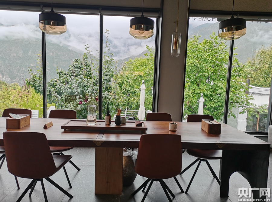 民宿窗外是层层叠叠的白藏房或葱绿的树林(央广网记者 杜静 摄) 赏山色空蒙水光潋滟,听深山鸟语水落石出。皈院特色精品民宿区,就这样“自然”坐落于海拔2780米的仲德村。从大理到乡城,从事民宿行业已4年的皈院民宿店长蒋模瑛说,乡城气候宜人,海拔也不高,非常适合游客休闲度假。目前接待的游客主要以成都、香格里拉以及北上广为主。 据了解,皈院已为青德镇及周边乡镇提供60个就业岗位,带动周边200余户近千余人从事相关产业。 藏家姑娘洛绒次姆已经在皈院做了一年多民宿管家。她说,如今在家门口就可以工作,虽然累,但最让她感到开心的是可以接触到形形色色的人。 依托良好的生态资源和独具特色的民俗风情,乡城以“全域旅游”推动乡村旅游提档升级,使乡村旅游成为农民增收、脱贫致富、全面建成小康社会的重要力量。泽珠表示,未来,乡城将以打造体验型旅游目的地为主,让游客在这里“停”下来。 |