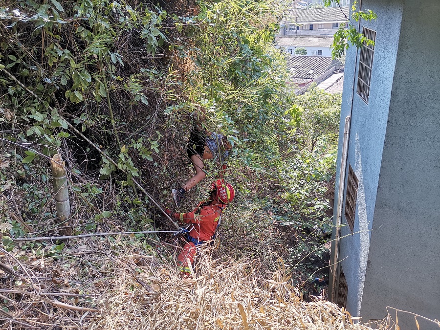 消防员正在解救被困男孩(央广网发 鄞州消防供图) 央广网宁波9月8日消息(记者杜金明 通讯员陈珊珊)9月7日下午1点28分,宁波市鄞州区消防救援大队指挥中心接到报警称:横溪镇永茂路2号附近有一男孩被困山崖上,情况十分紧急。 消防员到场后,发现男孩正挂在山崖边的荆棘丛中,所处位置离地面接近20米高。消防员立即做好防护,利用绳索进行下降,上方下方分别用绳索做好牵引,同时山崖上方做好安全防护,避免岩石滚落砸伤被困人员。消防员利用绳索不断靠近被困人员,由于荆棘丛比较茂密且锋利,靠近难度比较大。消防员首先一只手抓住被困小孩的脚踝,随即慢慢靠近,帮助被困人员系上腰带靠在救援人员胸前,将男孩和自己固定保护好,由山崖上的消防员合力往上拉。经过十分钟紧张救援后,被困男孩被成功救出。男孩随即被送往医院,经检查有些许肌肉拉伤,并无大碍。 经了解,被困男孩今年11岁,7日早上6点半从家里出发去上学,中途觉得天气有点热,一看时间还早,就坐在上山的路口处休息。他看到前方有一片竹林,便起身过去乘凉,不料边上是山崖,男孩突然踩空掉了下去,还好山崖上荆棘密布,把男孩给缠住了,不然后果不堪设想。男孩中途大声呼喊,但山上无人经过,距离山崖最近的厂房,由于机械声太大,厂里员工也没有听到。就这样,男孩被整整挂了6个小时。 |