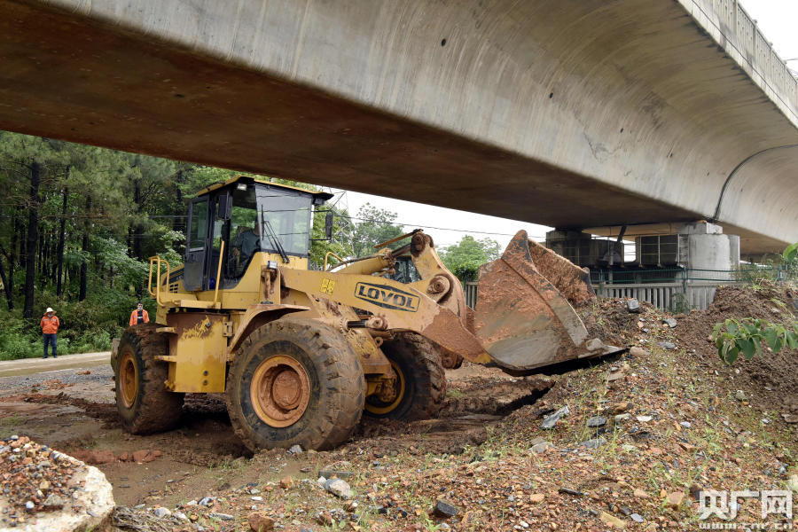 九江桥工段永修路桥车间作业人员对当地村民堆放的柴木进行清理(央广网发 通讯员黄旸 摄)