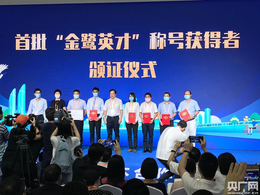 ![]() 厦门市在投洽会期间为首批“金鹭英才”称号获得者颁证(央广网记者陈庚 摄)