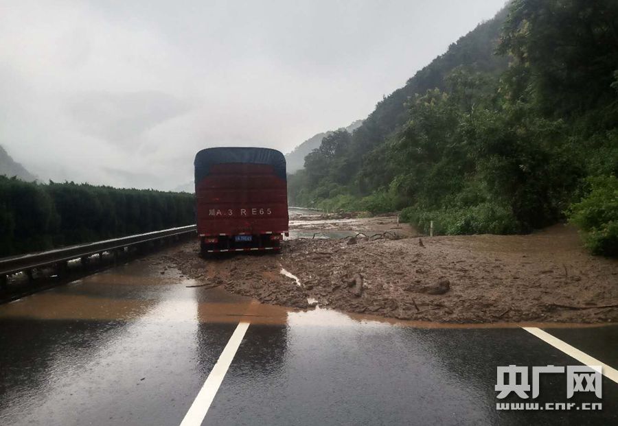 京昆高速因泥石流中断(央广网发 四川高速交警六分局供图)