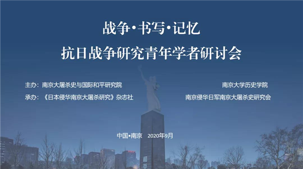 今年是中国人民抗日战争胜利75周年,为铭记抗战记忆,加强青年学者之间的学术交流,9月16-17日,由南京大屠杀史与国际和平研究院、南京大学历史学院主办,《日本侵华南京大屠杀研究》杂志、南京侵华日军南京大屠杀史研究会承办的“战争·书写·记忆:抗日战争研究青年学者研讨会”以线上形式召开。
