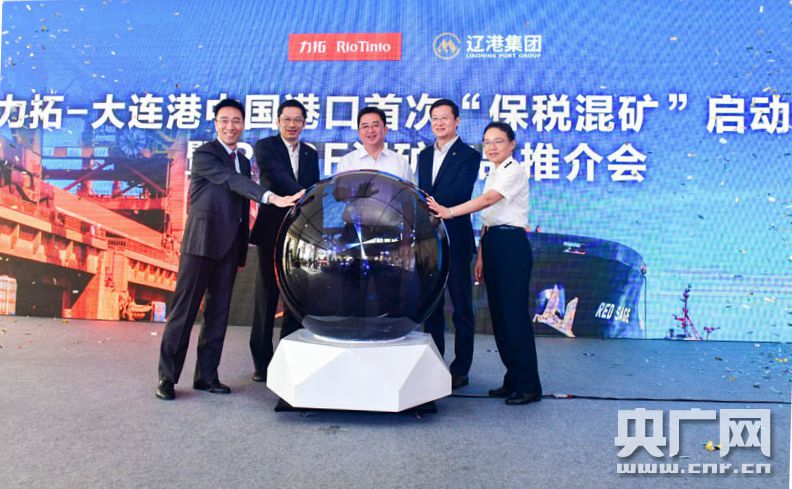 辽宁港口集团在全国率先启动多国别、多矿种“保税混矿”业务(央广网发 赵光辉 摄) 仪式上,来自加拿大和澳大利亚的不同种类矿粉在大连港矿石码头,经由皮带机被运送至“保税混矿”堆场指定区域。巨大的斗轮机匀速转动,将两种矿粉按照严格混配比例“合二为一”。混配后的力拓混合粉(RTBF)既发挥了两种矿粉的互补优势,也为国内、外钢铁企业提供了性价比更优的原料选择,近期将被销往日本、韩国,以及中国台湾、东北腹地等主要钢厂。 期间,大连港股份有限公司与力拓矿业商贸(上海)有限公司签署了合作谅解备忘录,双方将在铁矿石港口装卸、仓储、中转、保税、混矿、贸易等领域开展全方位合作,重点拓展“保税混矿”、国际中转等业务合作与创新模式,携手打造世界一流的东北亚铁矿石混配与分拨中心。