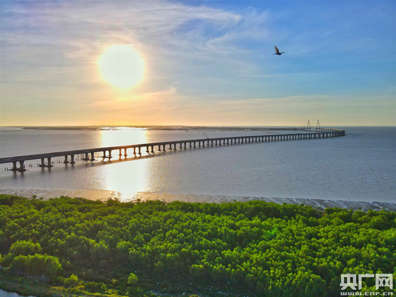 东雷高速控制性工程通明海特大桥贯通(央广网发 通讯员供图) 大桥上部结构采用封闭式流线型扁平钢箱梁和宽幅小箱梁,建设周期跨越4个台风期,自通明海特大桥建设以来,项目面临台风、雷暴、热带风暴等恶劣天气,又存在主墩桩基超长、叠合梁重量大、施工工艺复杂、安全生产风险大、环保要求高、结构耐久性强等施工难题。 为确保大桥安全优质建成,项目建设管理方通过倒排工期,调整施工措施、优化施工方案,打造品质工程为抓手,大力推进新技术、新工艺、新材料、新装备的应用,采用主塔液压爬模施工、新型旋挖钻成孔技术、承台套箱采用整体吊装等施工工艺,为大桥按计划顺利贯通夯实了基础。据了解,大桥建成后可抵挡16级超强台风。 同时,为了最大程度保护海岸红树林原生态,通明海特大桥采取S型路线拐弯连接西岸,绕道百年红树林,粤西人民的“金山银山”得到有效保护。 打造粤西地区“半小时”经济生活圈