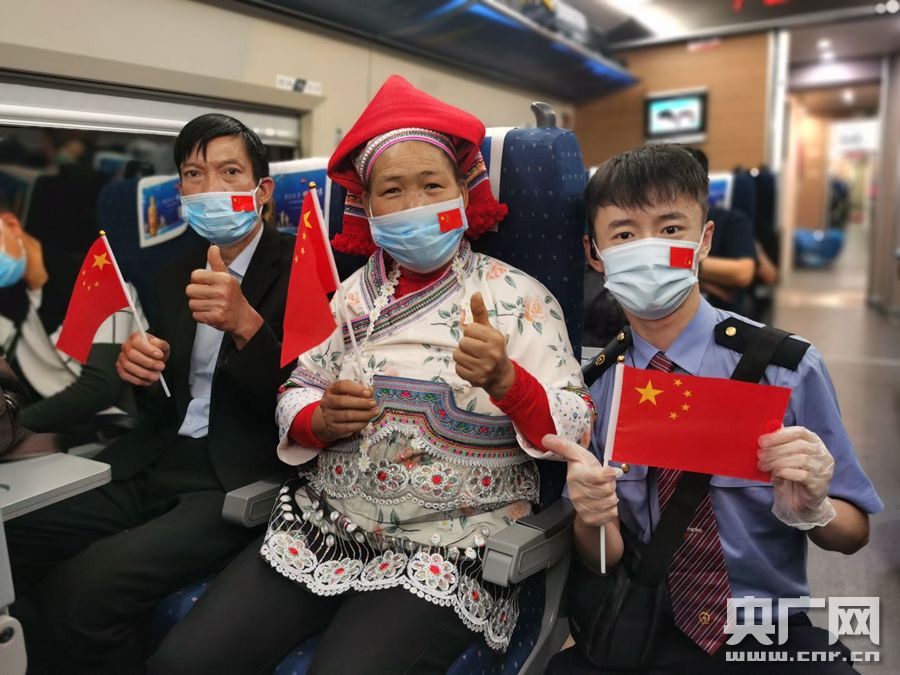 高铁上的乘客与列车员(央广网发 通讯员供图) 在今年交通行业普遍受疫情影响,客流严重下滑的情况下,昆明局集团实施精准开车,用安全准时的运输时效、优质服务持续改善旅客美好出行体验,1-9月份云南高铁动车的客流已恢复至去年同期的82.9%。 |