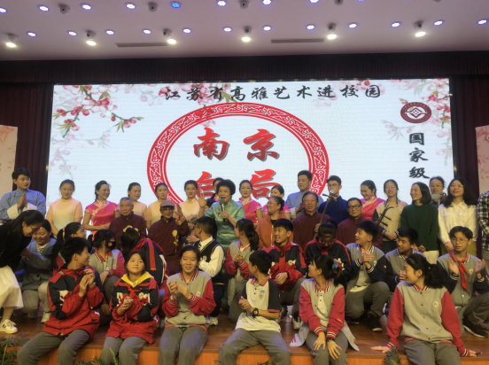 黄玲玲老师与小戏迷们合影留念 南京白局进校园活动不仅提高了师生们的艺术修养和文化素质,还让大家深深地感受到了来自传统文化的魅力,并且向年轻一代的孩子们普及了白局这项艺术形式,对保护和传承南京白局有着重要意义。(戚轩瑜 徐新萌) |