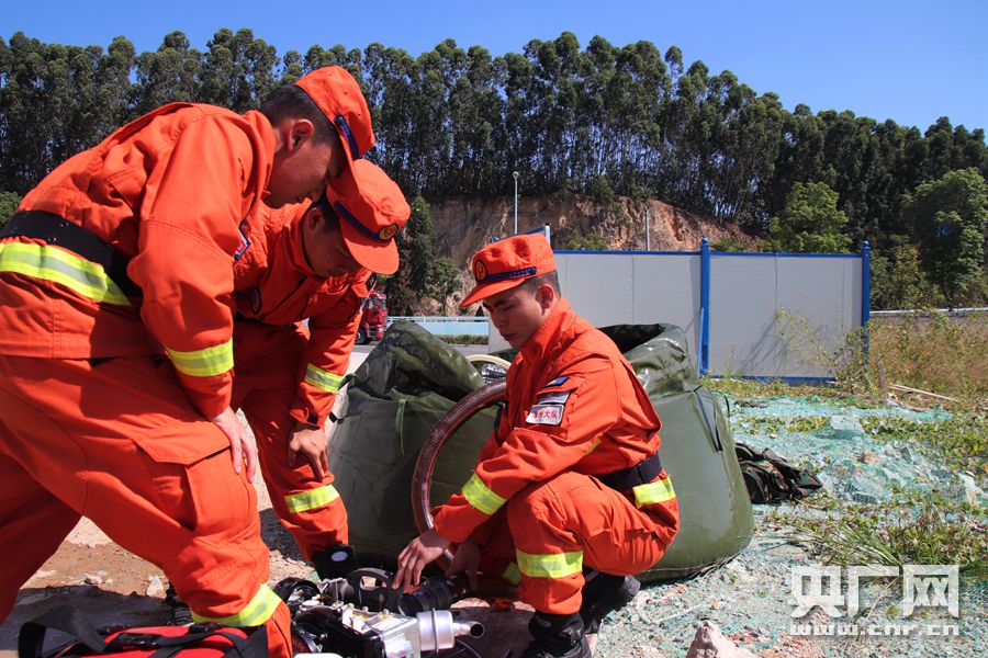 研究水泵灭火战术(央广网发 通讯员供图) “报告,队长,一组人员已全部到达火场附近”“收到,第一组爆破手选择火势较弱的地方实施爆破,打开突破口后,一组和二组人员迅速从火线东西两侧开始实施扑打,各组长是否明白……”“一组明白”“二组明白”,瞬间驻训场浓烟四起,战味十足,一身红战袍,在火舌喷涌、火苗四溅的真实火场中挥洒汗水、锤炼队伍作战能力。常规灭火机具与水泵结合灭火,水火交融,一场震撼人心的森林灭火大片在驻训场强势上演。