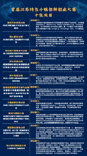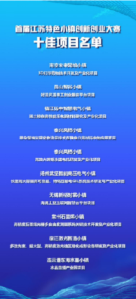首届江苏特色小镇“创新创业”大赛十佳项目出炉