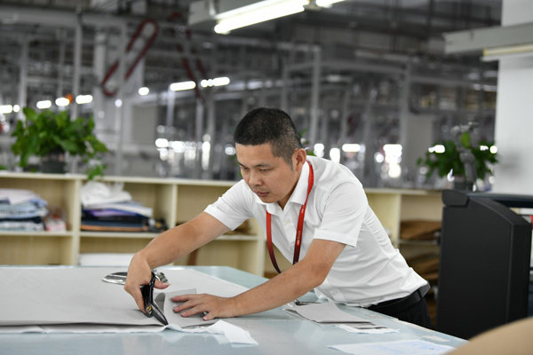 设计师吴伟和郭军伟交流设计要领和工艺要求 让柔软的面料变成符合设计师设计气质的服装,需要“骨骼”。在大多人眼里,版师就是一个普通技术工种,可在红豆男装研发中心设计部二部部长吴伟眼里,郭军伟就是她设计的每一款衬衫“骨骼”塑造者。 “‘画龙画虎难画骨’。骨骼既要有严丝合缝的精密,也需要挥洒自如的精细,所以对于服装样板的精准把握和细节处理可见版师真功夫。”吴伟从事衬衫设计已经十多年,她和郭军伟合作已经5年多,他们合作的衬衫每年都会产生门店畅销的“爆款”。在郭军伟眼里,从设计图稿到制版,不是简单的制作,而是创作,因为每个人的身形尺寸都是唯一,有人肩宽,有人平肩,有人溜肩,脖子、腰身各有粗细,在他看来,每一件衬衫都是独一无二的艺术品。 “没有工匠精神 ,就不可能打造金字招牌的中国制造。郭军伟身上那种务实低调、遇到难题不推诿,对产品精雕细琢、追求完美的工匠精神,让我印象深刻。”吴伟说,郭军伟的优秀不是一种行为,而真的是一种习惯。 职业生涯始终围着制版转,郭军伟靠着对职业技能的完美追求,靠着对技术的忠实传承和钻研,靠着几十年如一日的专注和坚守,将中国版师的梦,描绘得愈发丰富多彩。 |