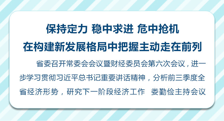 保持定力 稳中求进 危中抢机 江苏召开常委会分析前三季度经济形势